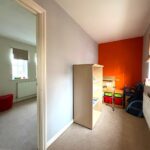 Radiator, range of built in wardrobes, window to the rear.