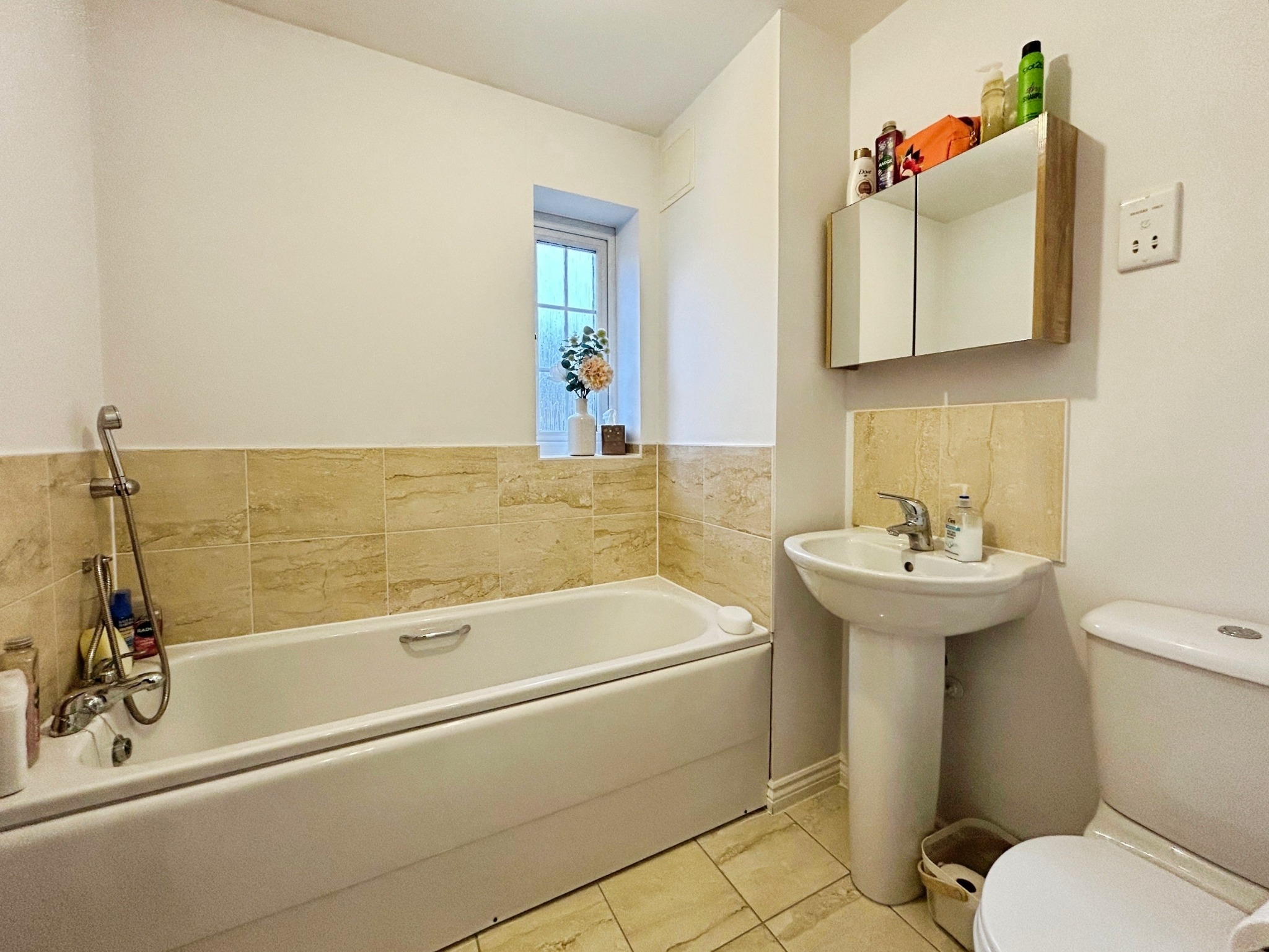 Fitted with a bath, WC, and wash hand basin.