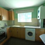 Range of fitted base units incorporating cupboards and drawers beneath a work surface. Further range of matching wall cabinets. Inset sink, inset four plate electric hob with electric oven below and hood above. Space for a washing machine. Wall mounted boiler (installed on 3.3.2026). Part tiled walls, window to the rear.