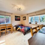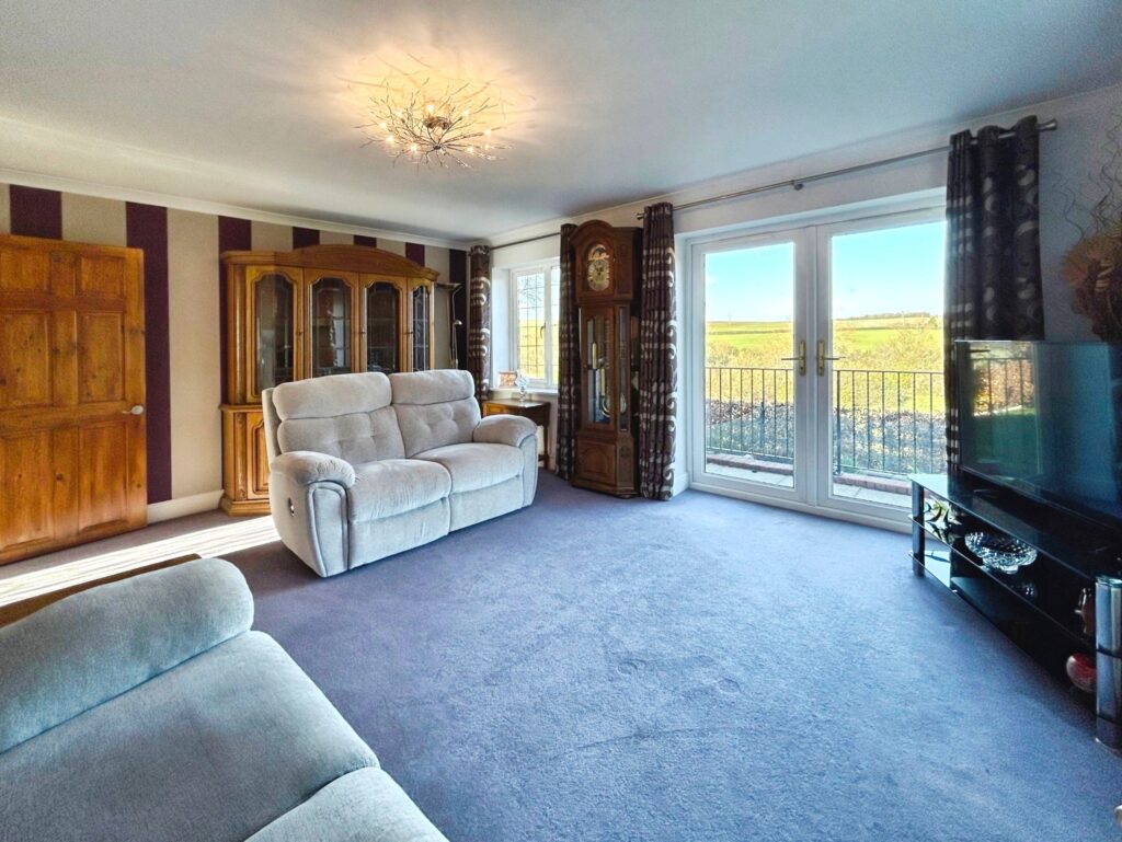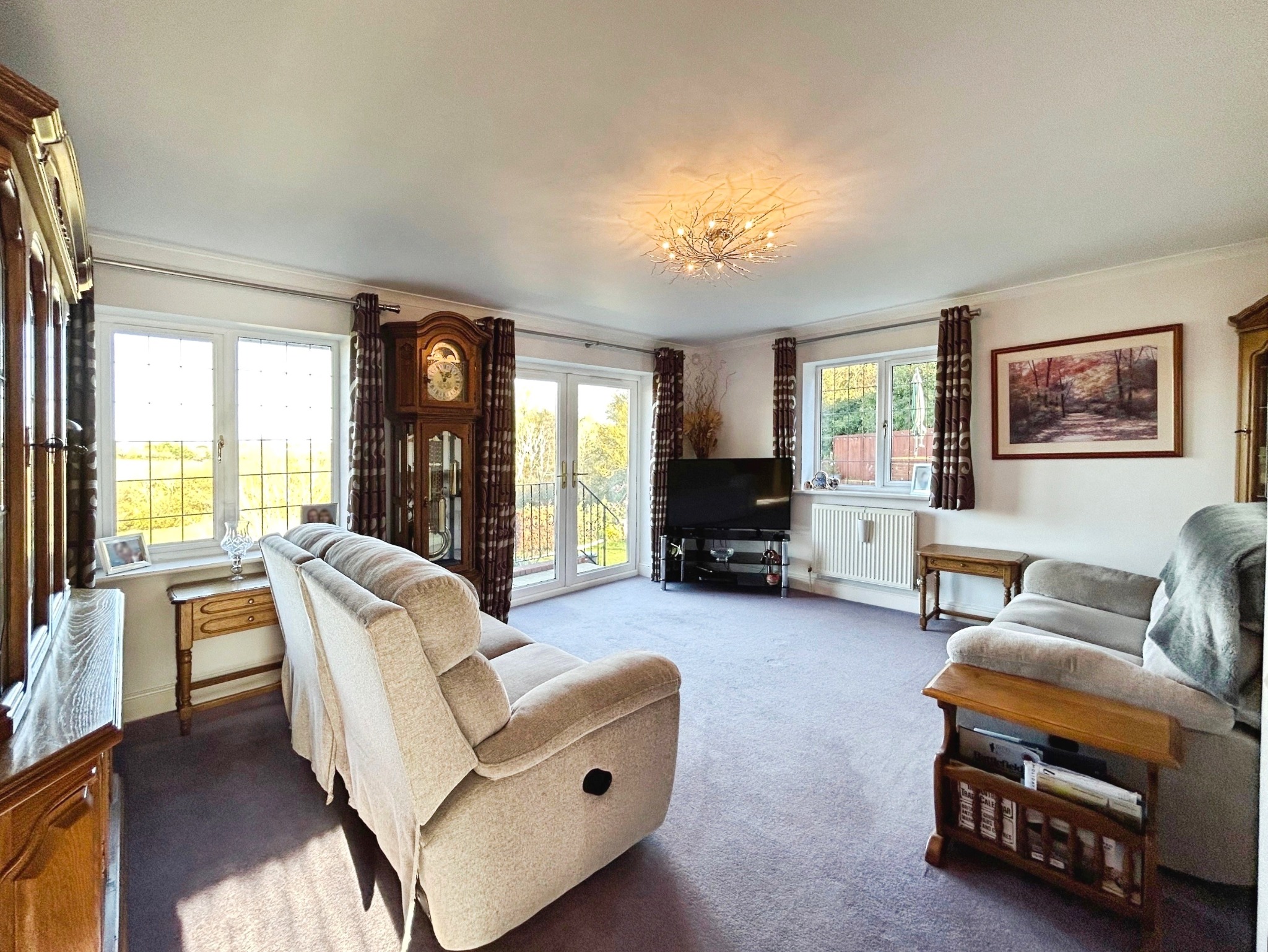 A spacious reception room with windows to the side and rear aspects. Double patio doors open onto the rear garden.