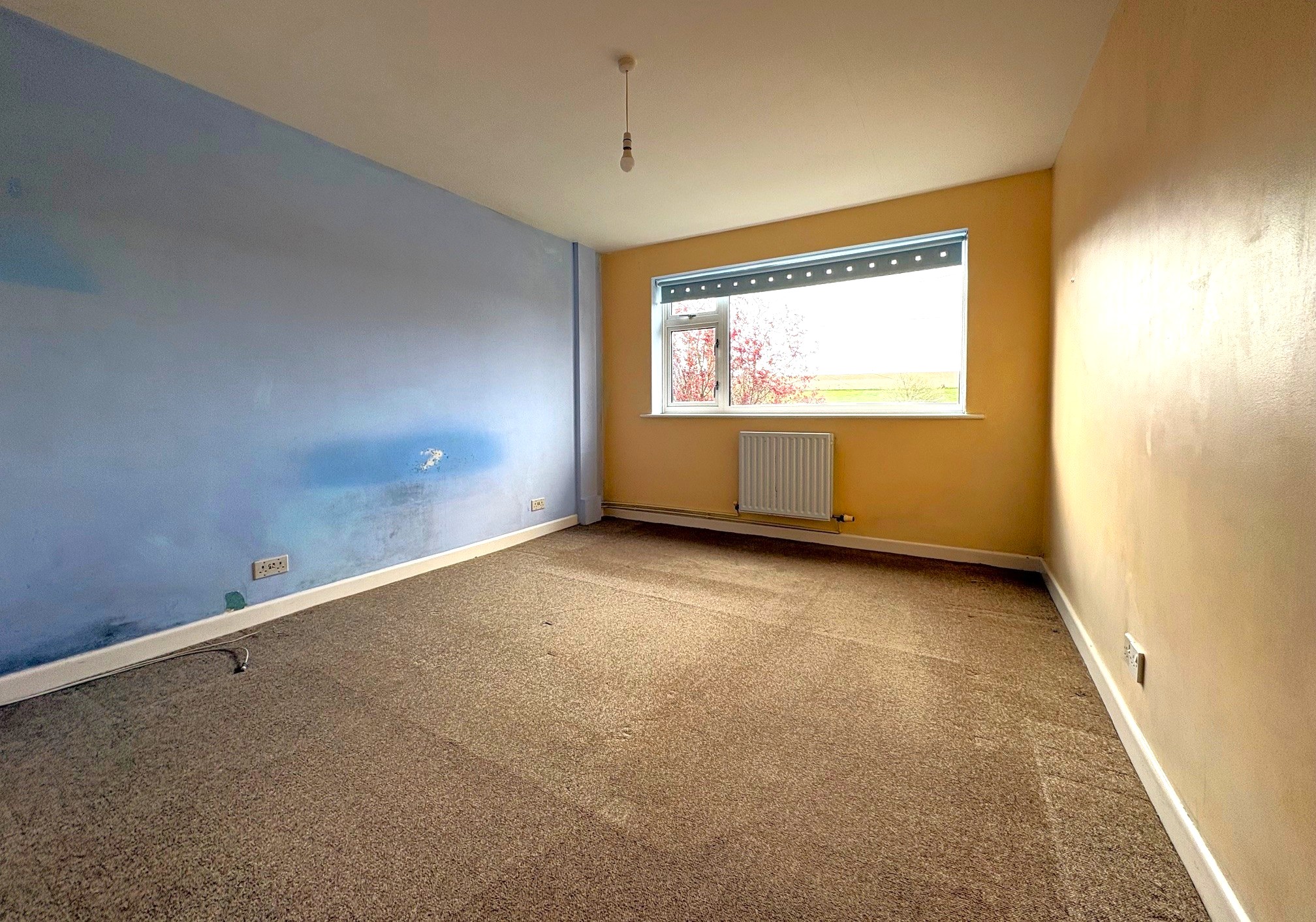 Radiator, window to the front with views over rooftops towards fields.