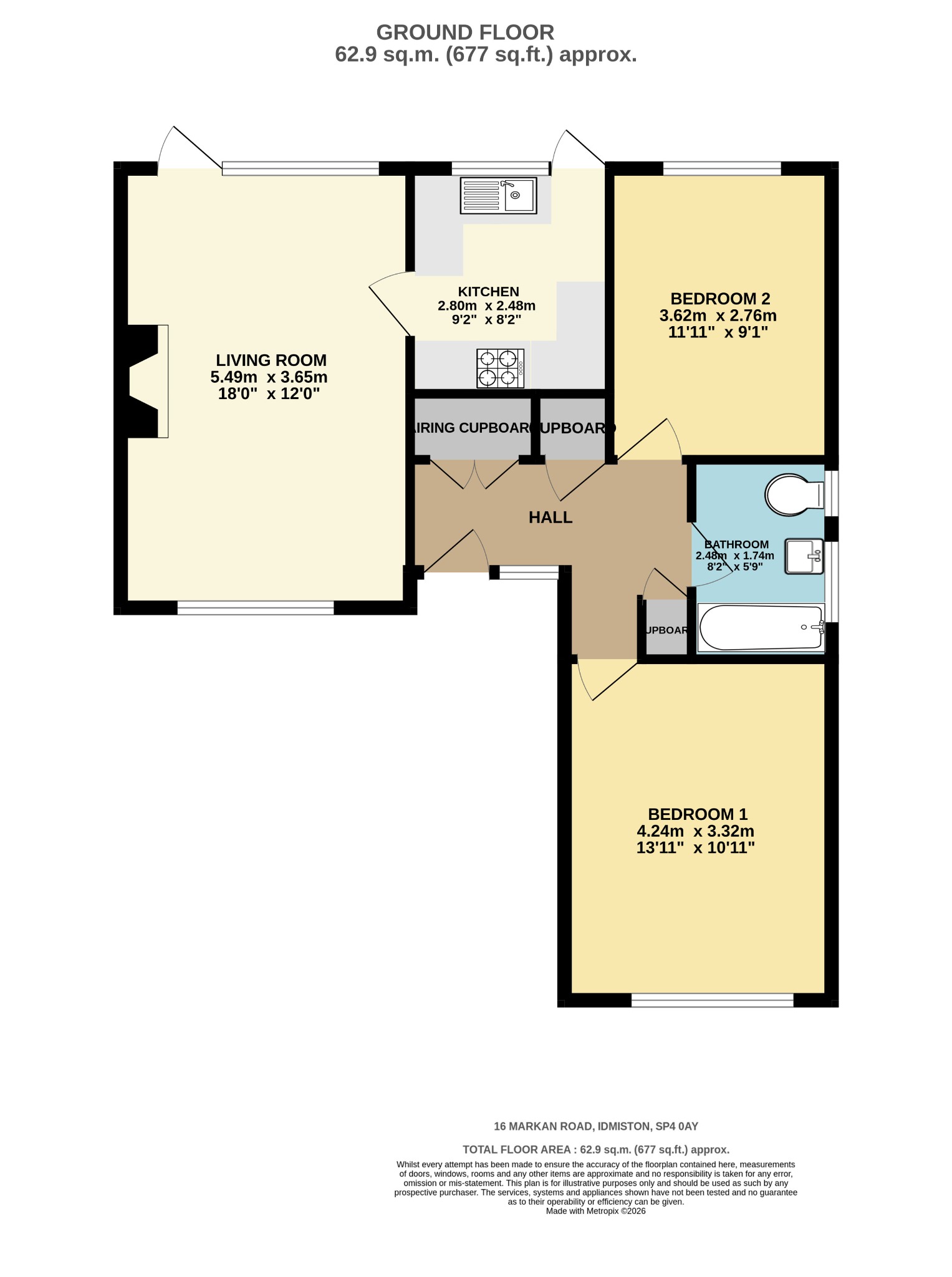Radiator, airing cupboard, two storage cupboards, hatch to the loft.