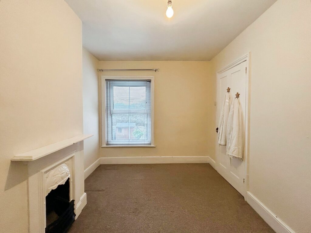 uPVC window to rear aspect, radiator, fireplace, carpeted, smooth ceiling.