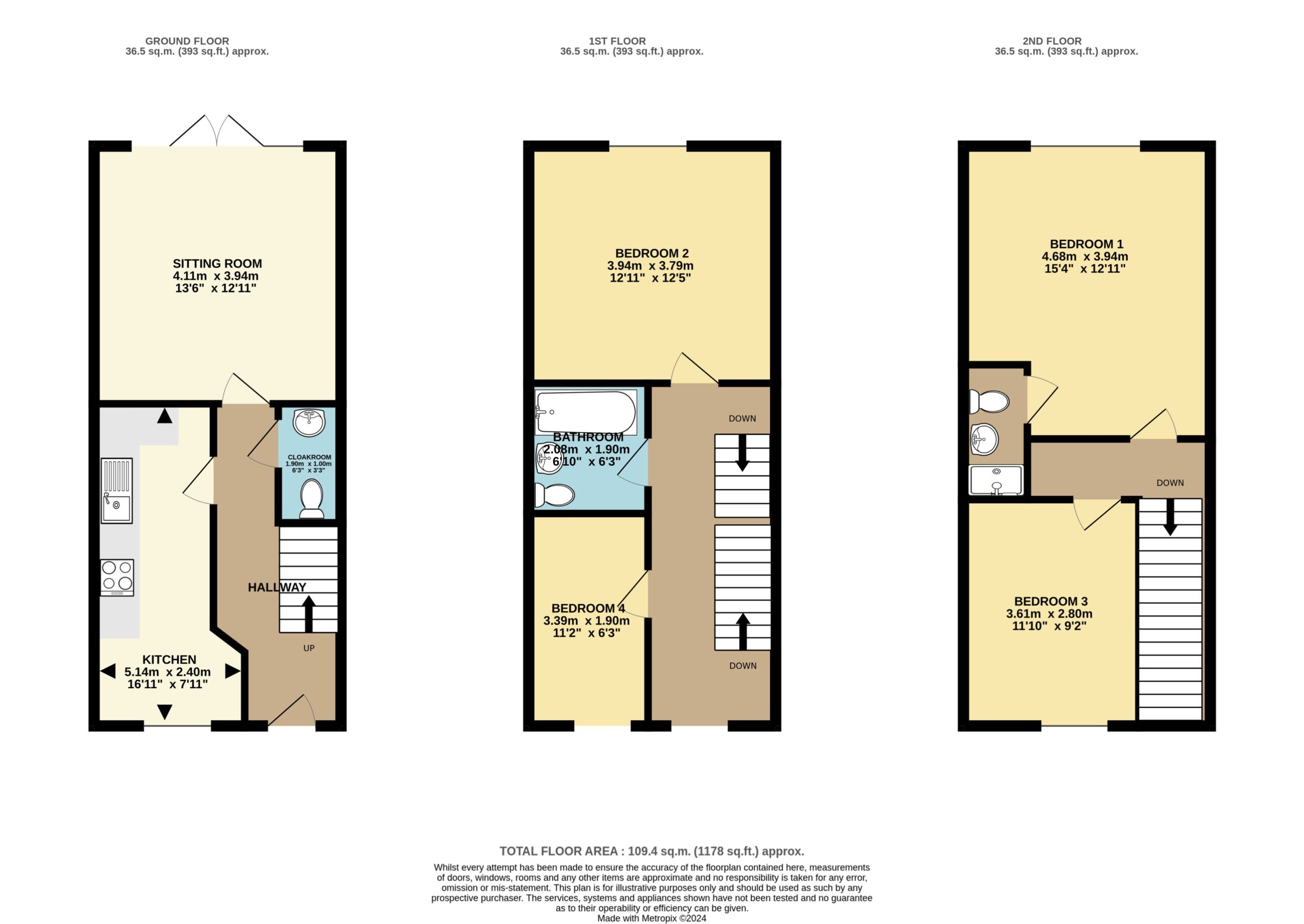 An incredibly spacious and NEWLY REFURBISHED three-storey townhouse located in Augusta Park, Andover. Comprising an entrance hallway, a cloakroom, a modern kitchen/dining room & a sizeable living room with patio doors leading to the garden. The first floor offers: a double bedroom with a built-in wardrobe, a single bedroom, and a family bathroom. The second floor offers: a generously sized master bedroom with a built-in wardrobe and en-suite shower room, and a further double bedroom. Enclosed rear garden. Allocated parking for a car. Gas Central Heating and Double Glazing.