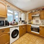 Fitted with a range of base and eye-level units, a fitted oven, electric hob with extractor fan, sink with drainer, and space for a washing machine and fridge/freezer. The boiler is located in the corner of the kitchen. Door leading through to the conservatory.