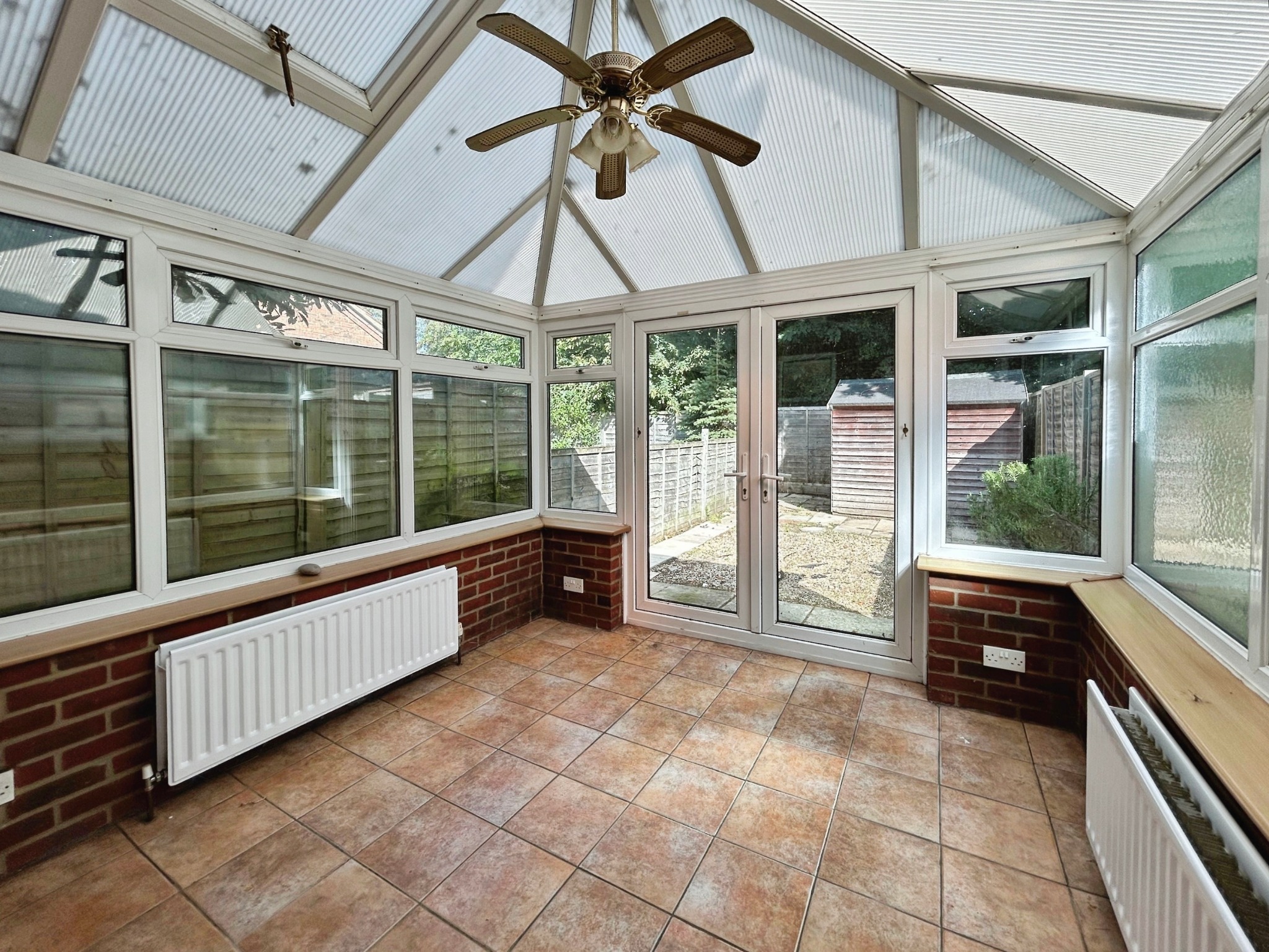Brick and UPVC construction under a perspex roof covering. Tiled floor, radiator, French doors open to the rear garden.