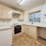 Range of base units incorporating cupboards and drawers beneath a work surface. Further range of matching wall units.Inset sink, four plate electric hob with electric oven below and hood above. Spaces for a washing machine and a fridge/freezer. Breakfast bar. Wall mounted gas boiler. Window to the rear and door into the conservatory.