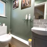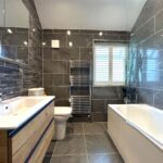 Recently modernised suite with bath and overhead shower, WC, wash hand basin, and heated towel rail.